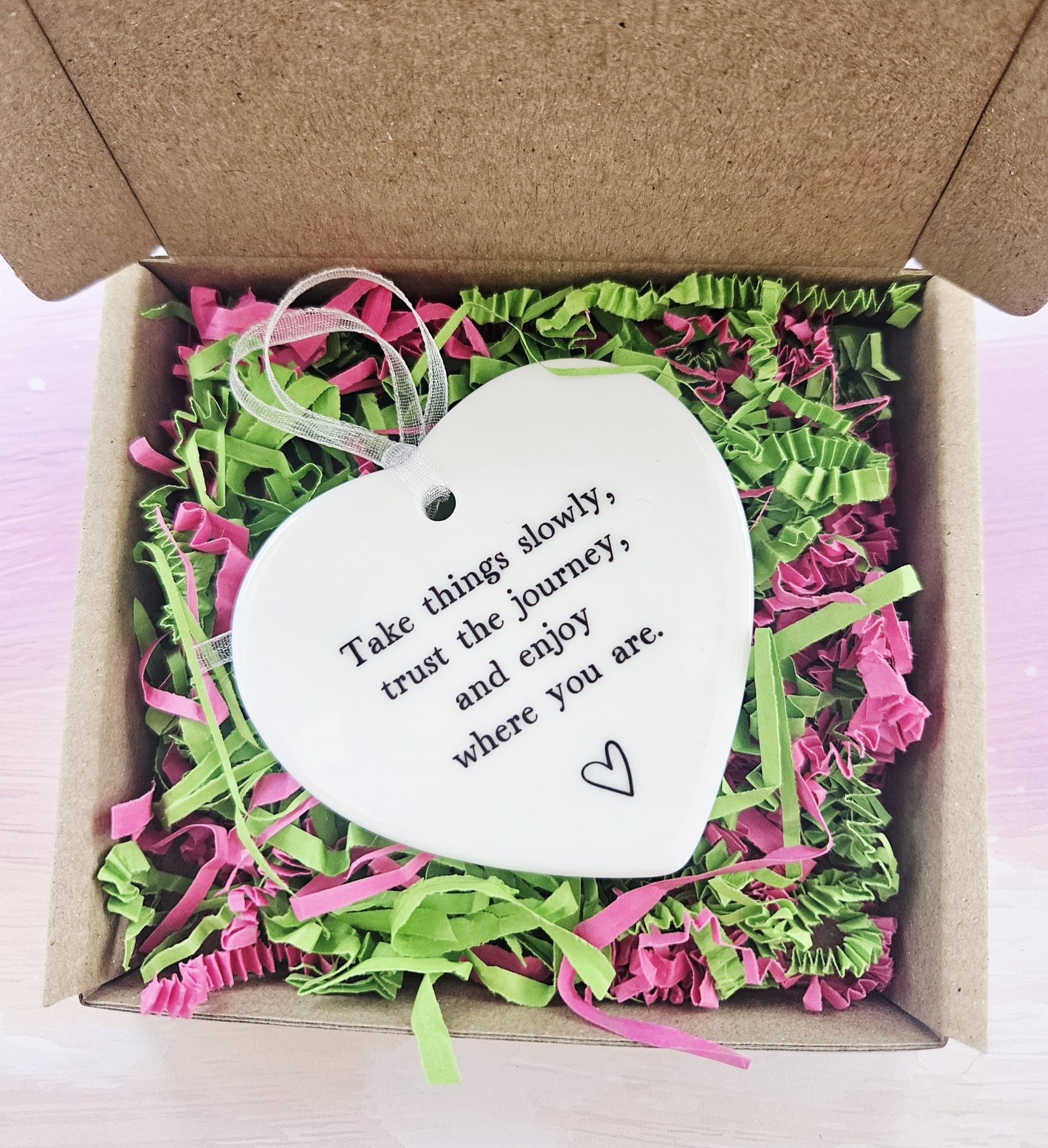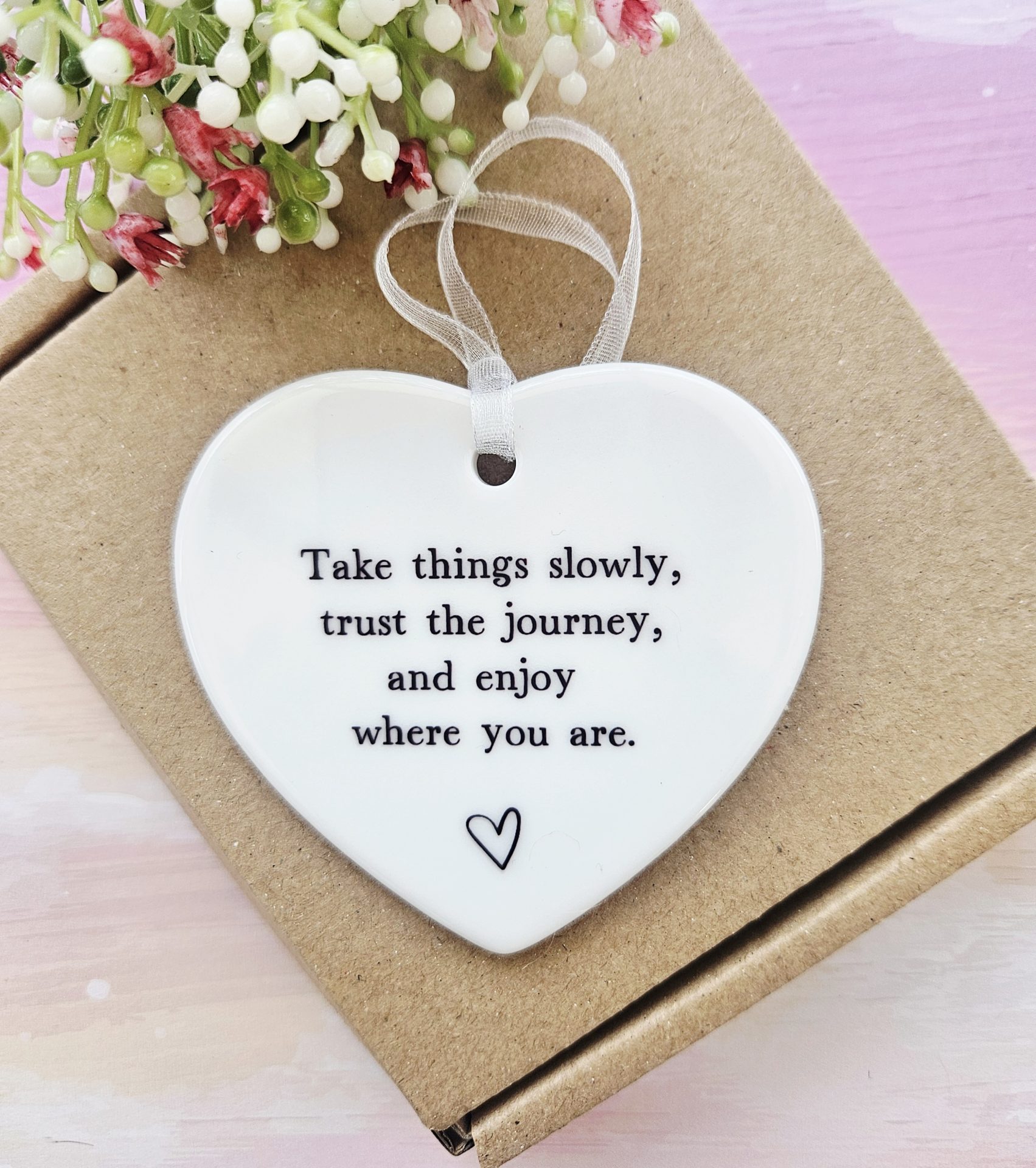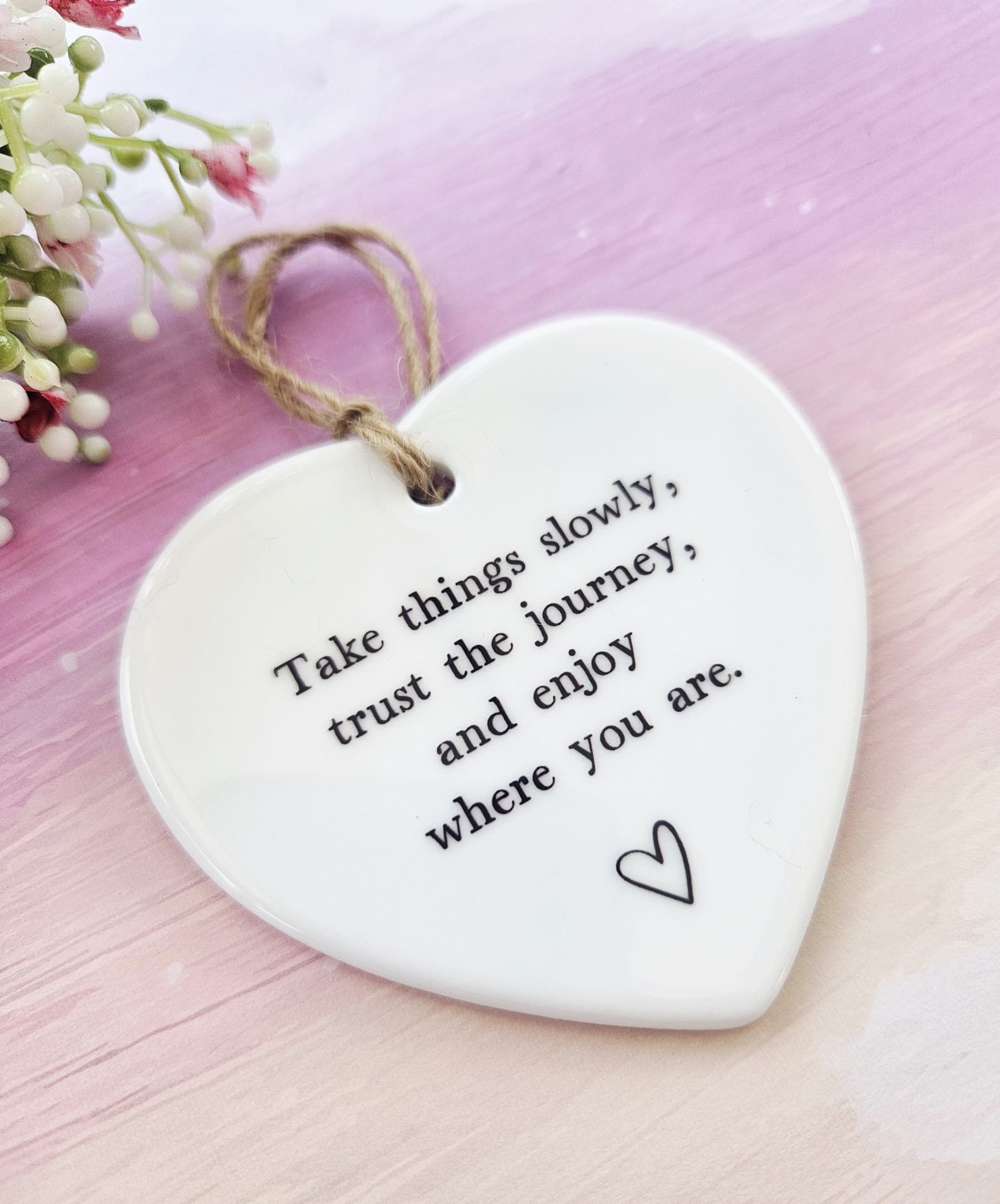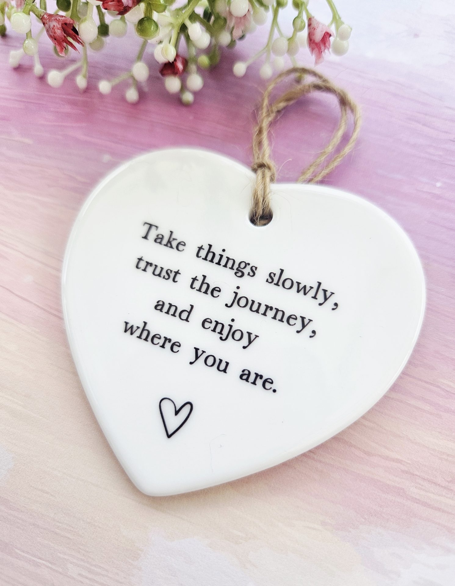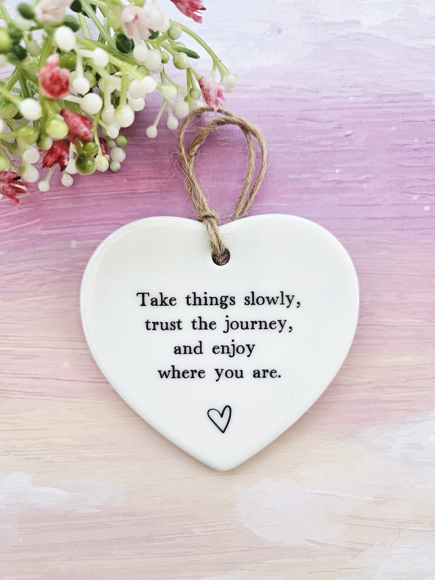 Take things slowly, trust the journey, and enjoy where you are 🤍 This ceramic hanging heart offers a gentle reminder to pause and breathe. Because life can feel overwhelming at times, this keepsake encourages calm and reassurance every day.