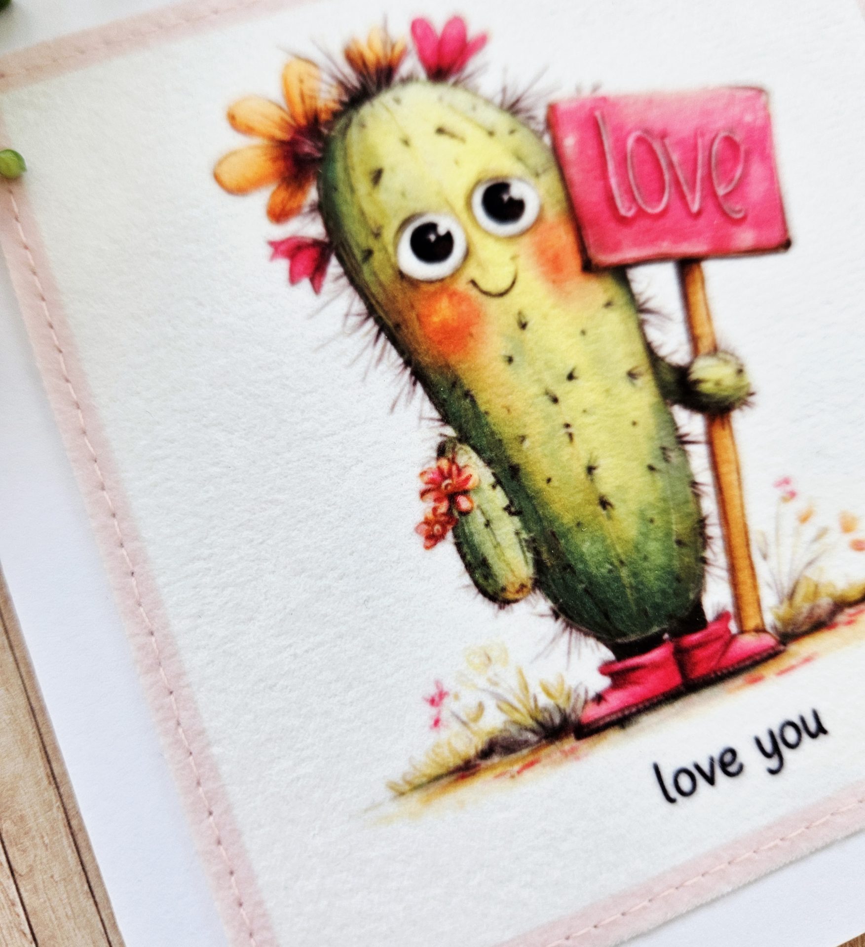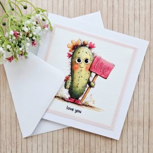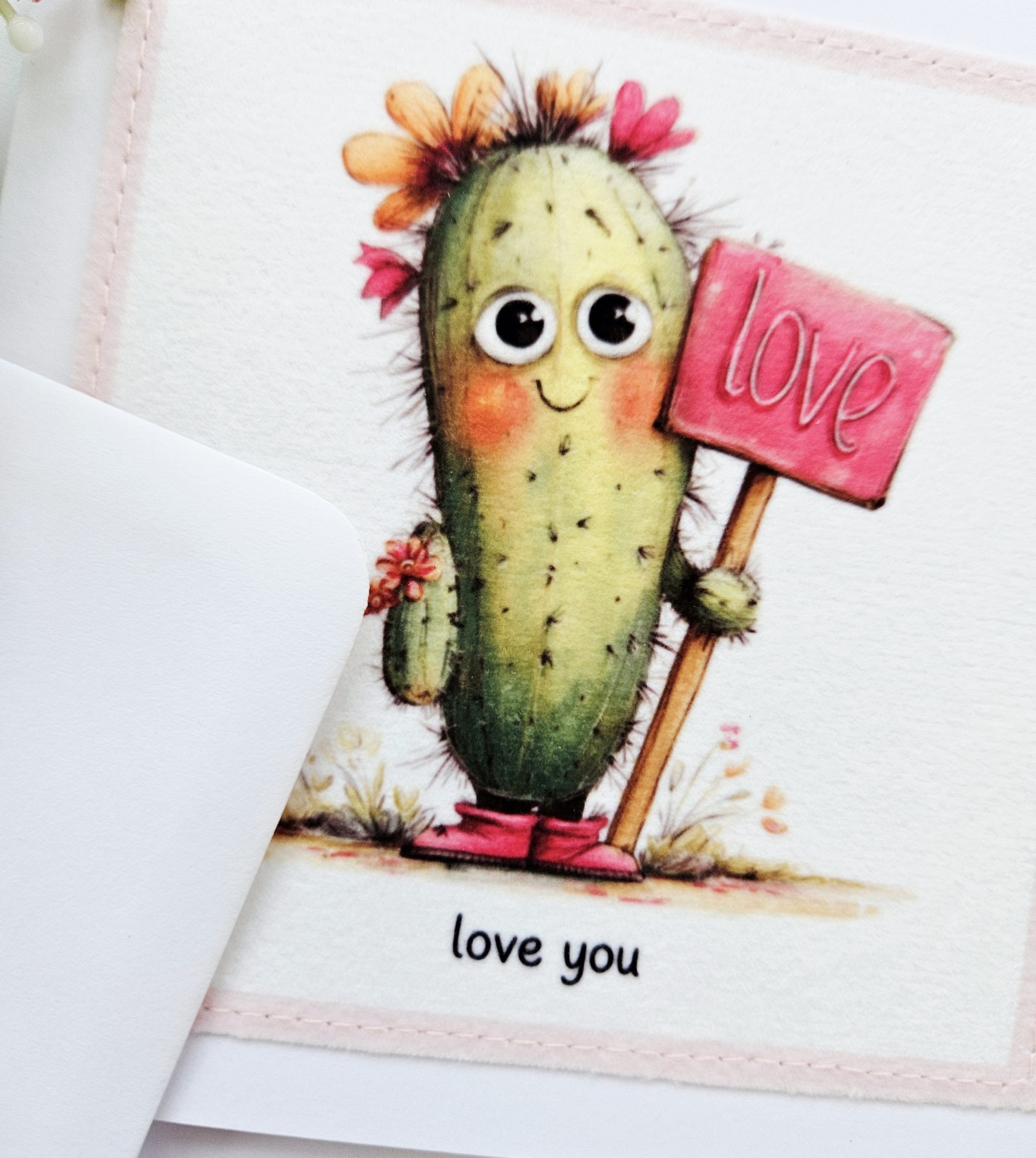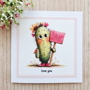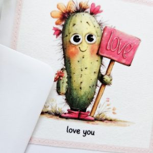 This handmade cactus greeting card offers a light-hearted and caring way to share love and make someone smile.