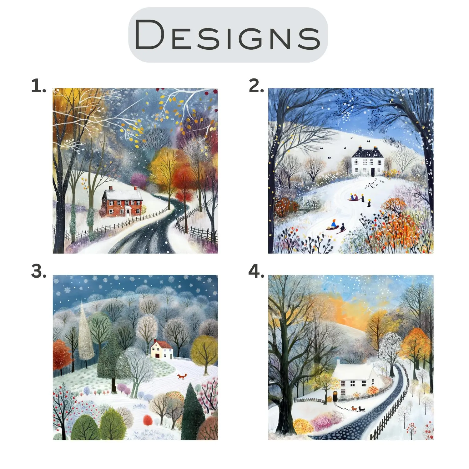 Choose from four unique winter scene designs, each carefully crafted to brighten your celebrations and make your décor extra special.