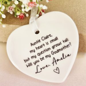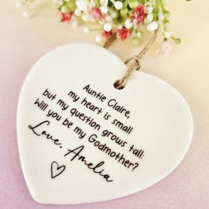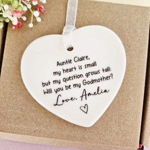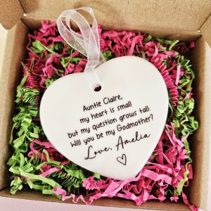This handmade ceramic heart is the perfect way to ask, “Will you be my godmother?” It’s a heartfelt moment that becomes a treasured keepsake. Therefore, this gift blends sentiment with style for a lasting memory.
