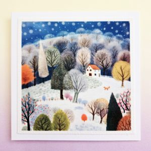 - Whimsical snowy cottage scenes to evoke cozy winter holidays