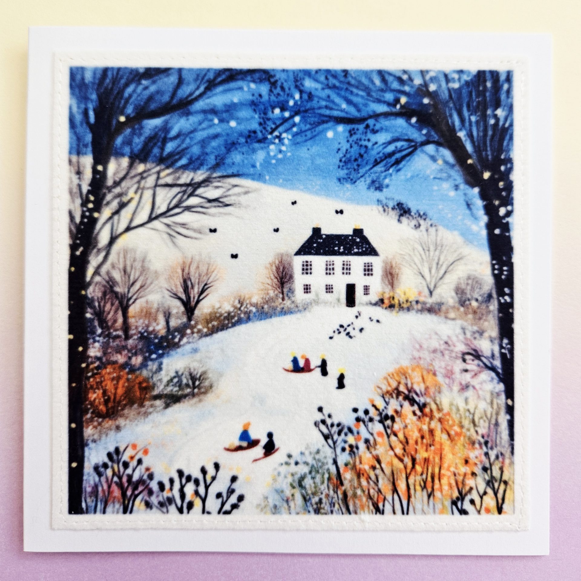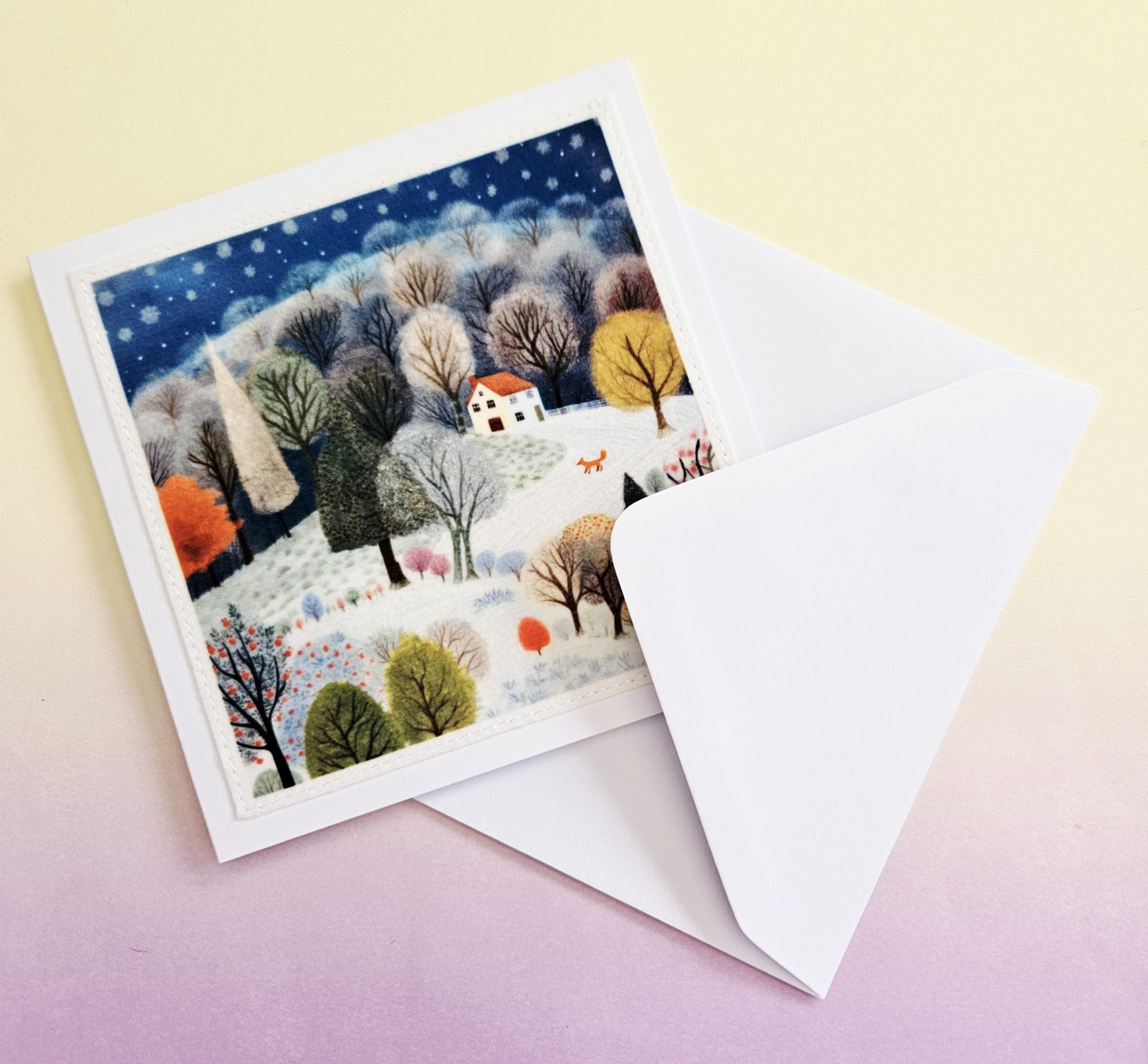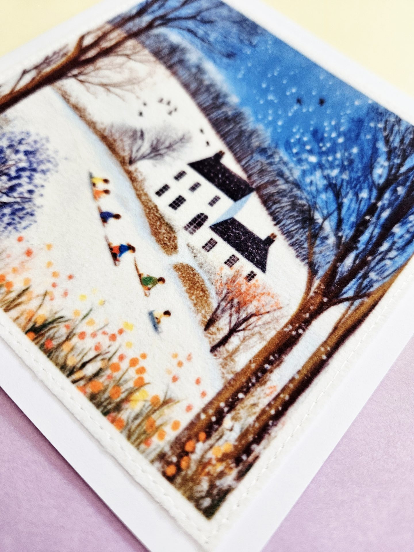 Send a touch of handmade magic this festive season with our set of 5 handmade Christmas cards. Each card features a whimsical snowy cottage scene, crafted with printed fabric and careful machine-stitching for a unique, textured finish. These rustic, cottagecore Christmas cards are perfect for lovers of cozy winter holidays and one-of-a-kind holiday greetings.