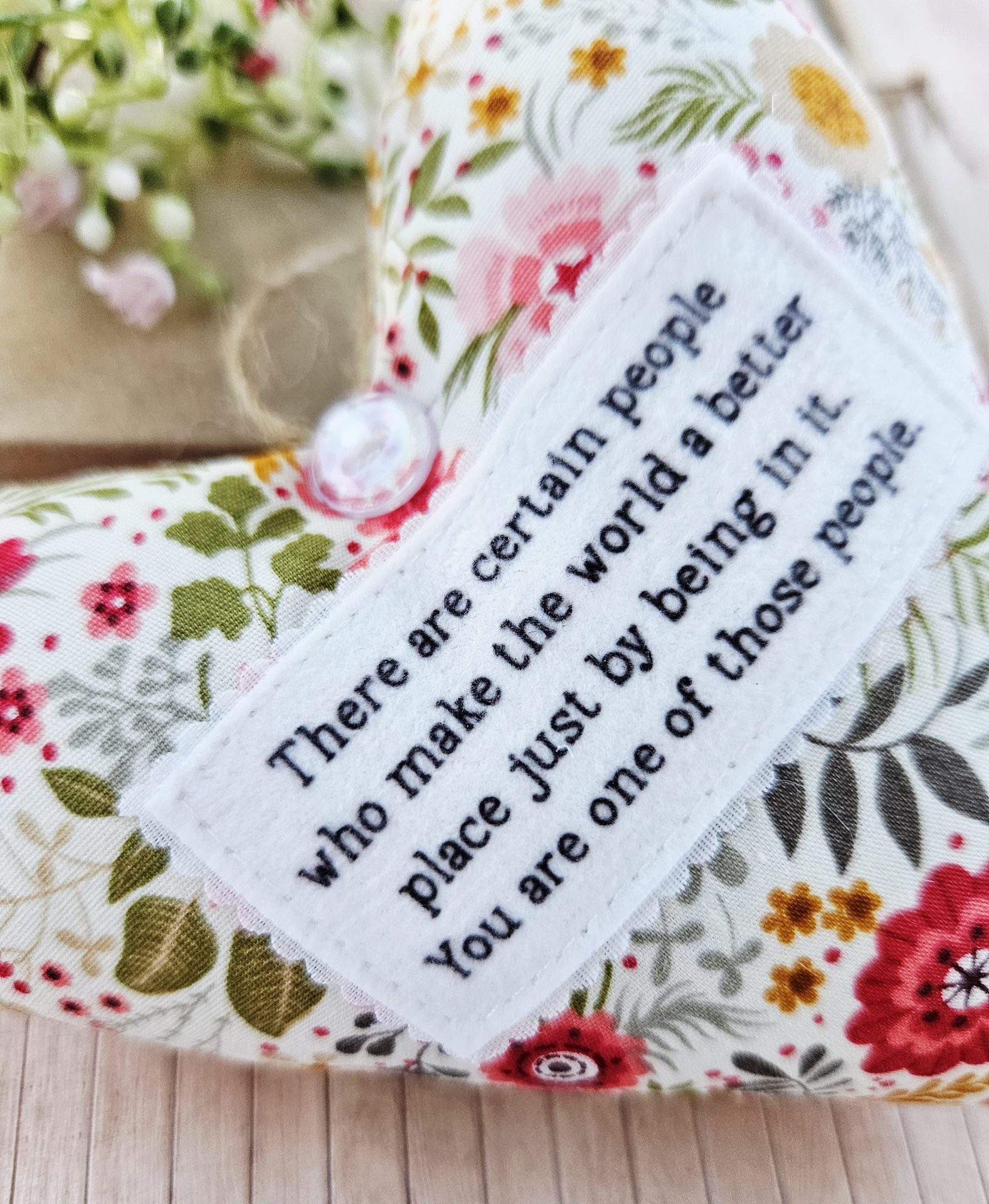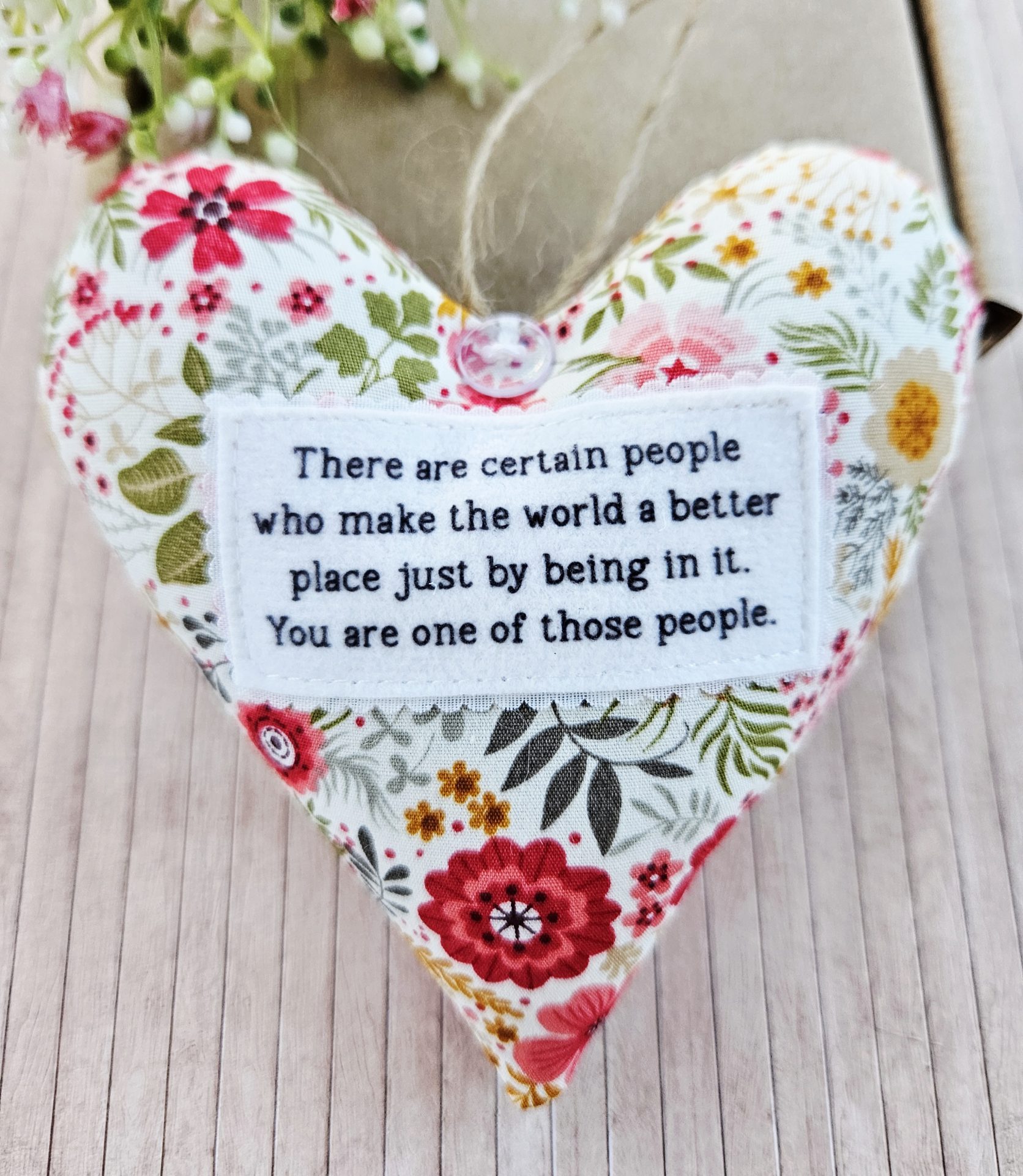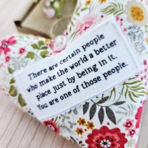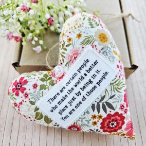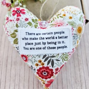 This handmade fabric hanging heart is a gentle and meaningful keepsake. It celebrates the people who make the world brighter just by being themselves. As a result, it makes a thoughtful gift for someone truly special.