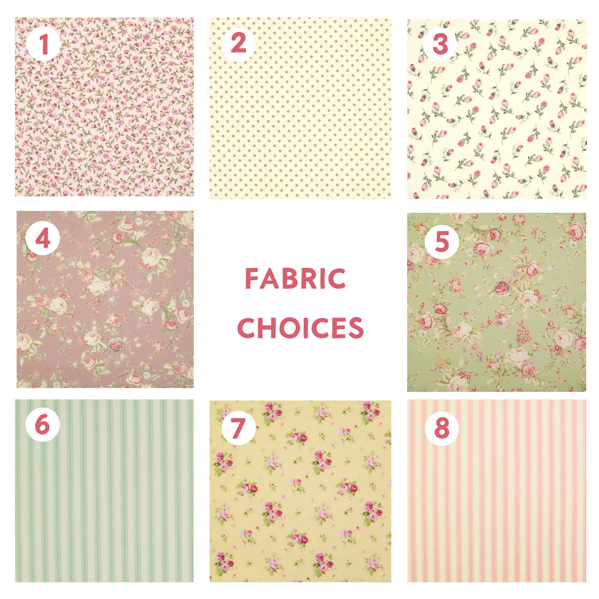 • Choice of cotton fabrics (please select from the photos)