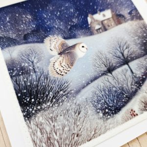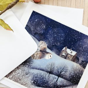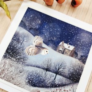 Because each card is handmade, every one feels unique. The warm winter tones and calm woodland character also make this owl greeting card a timeless design that can be kept, displayed, or treasured long after it is received.
