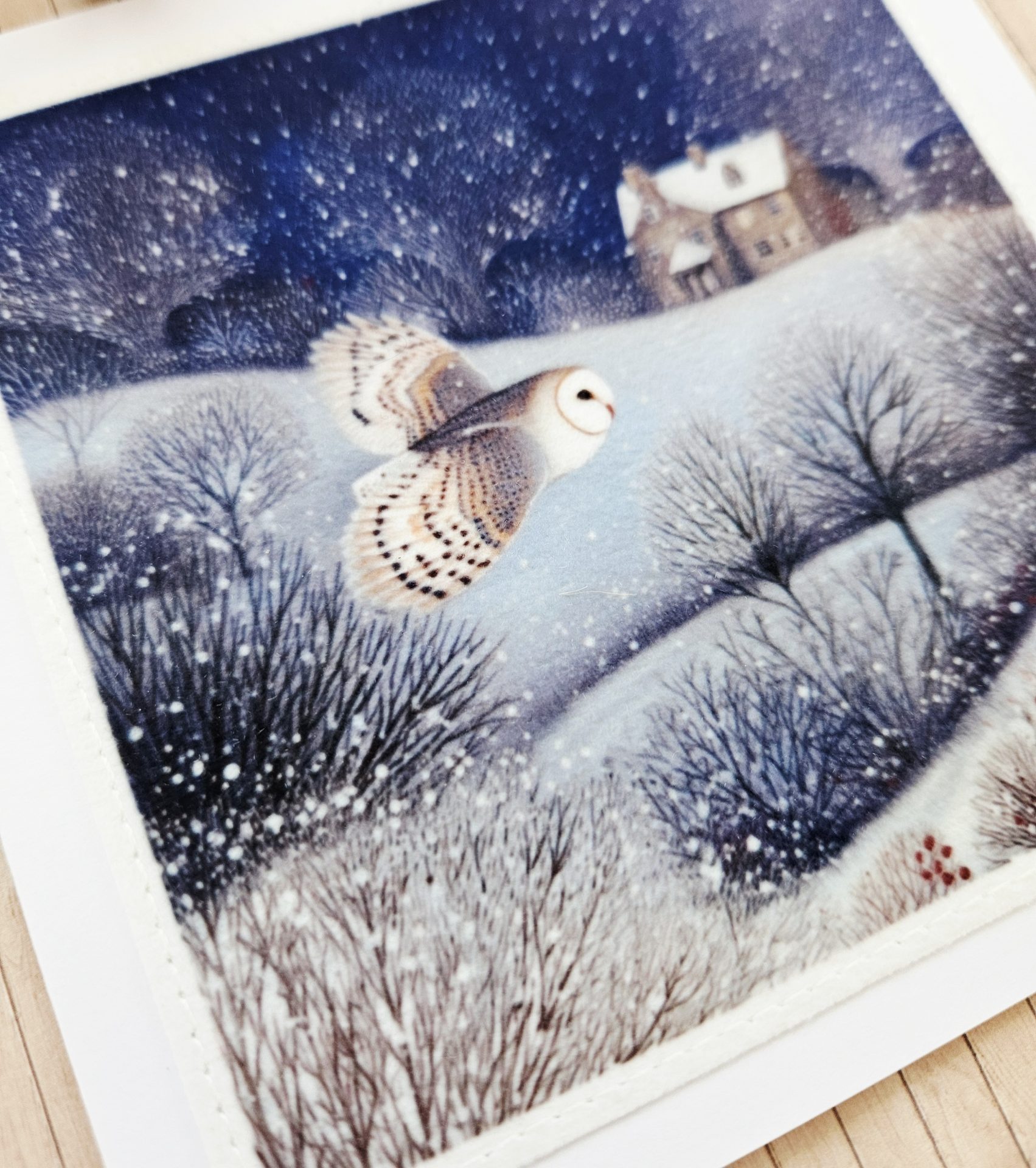 This handmade winter owl greeting card offers a calm and comforting way to share meaningful words during the colder months.