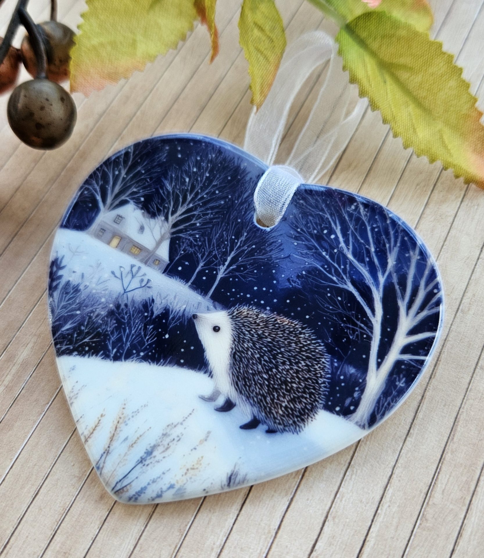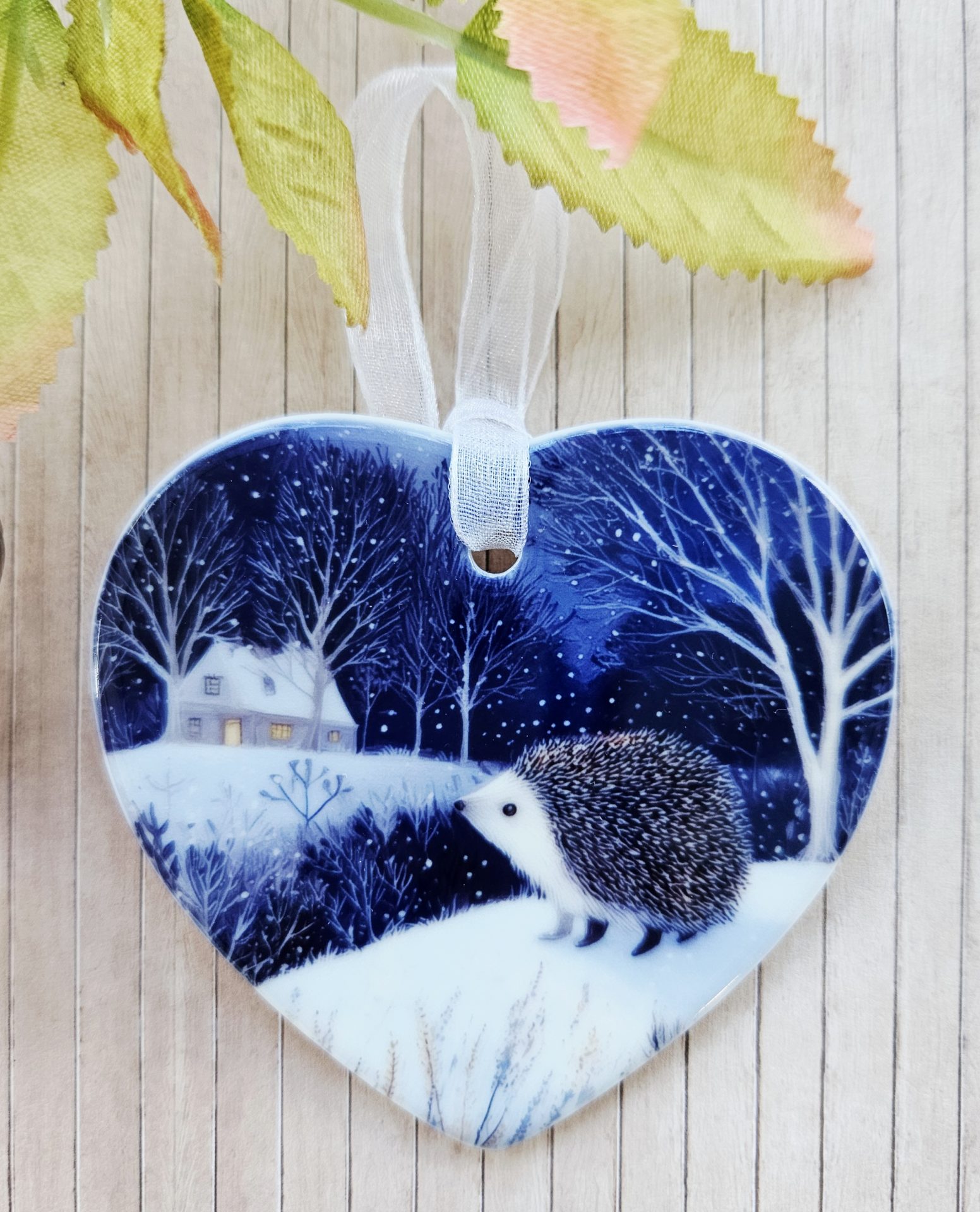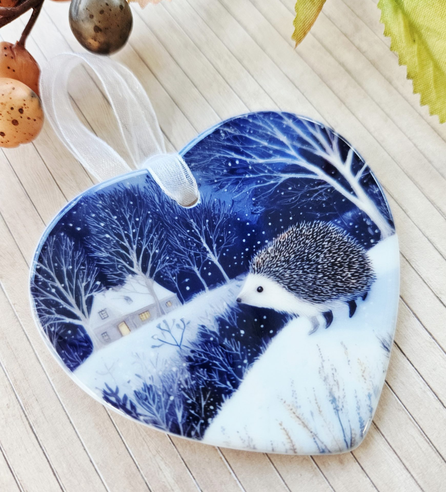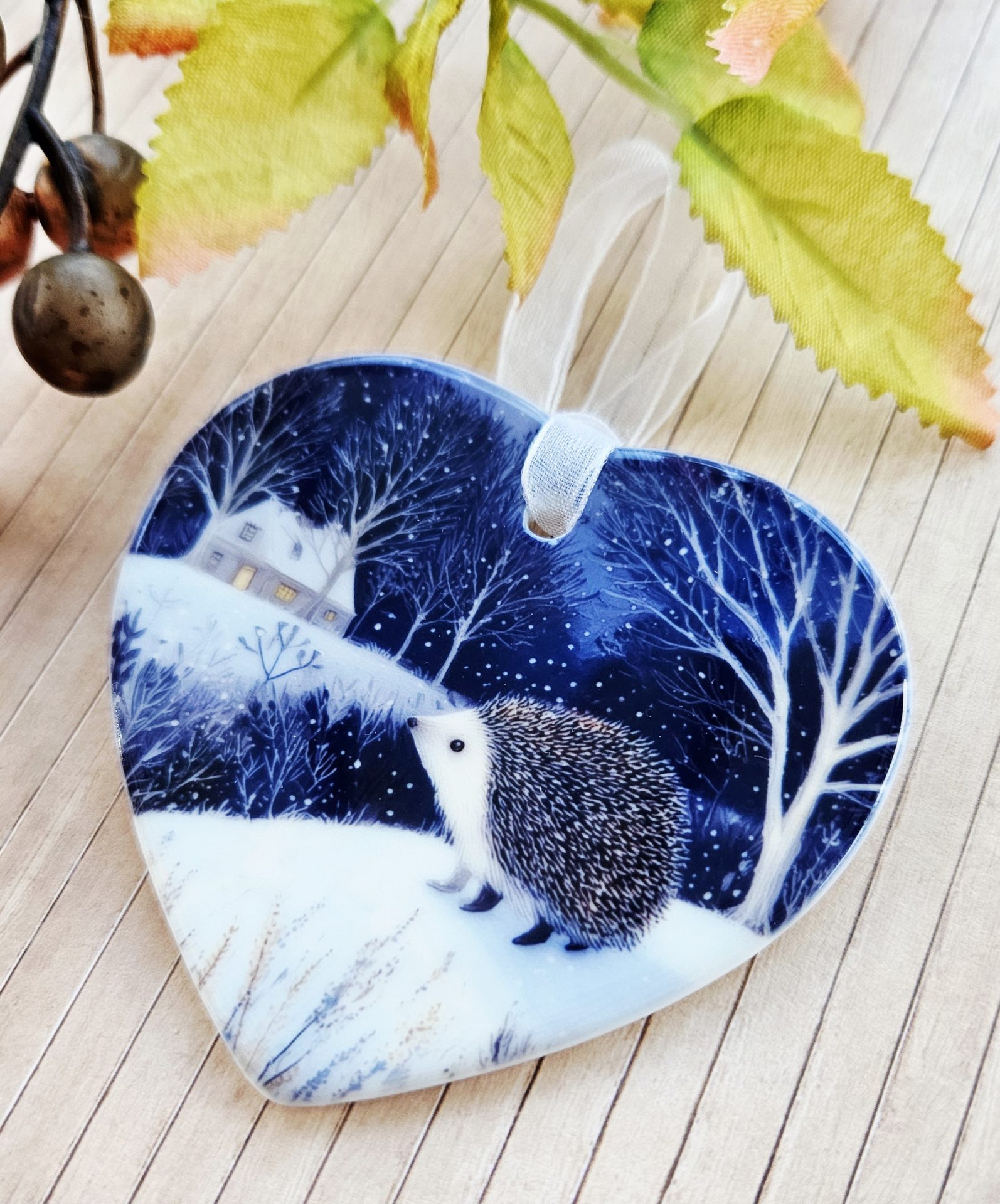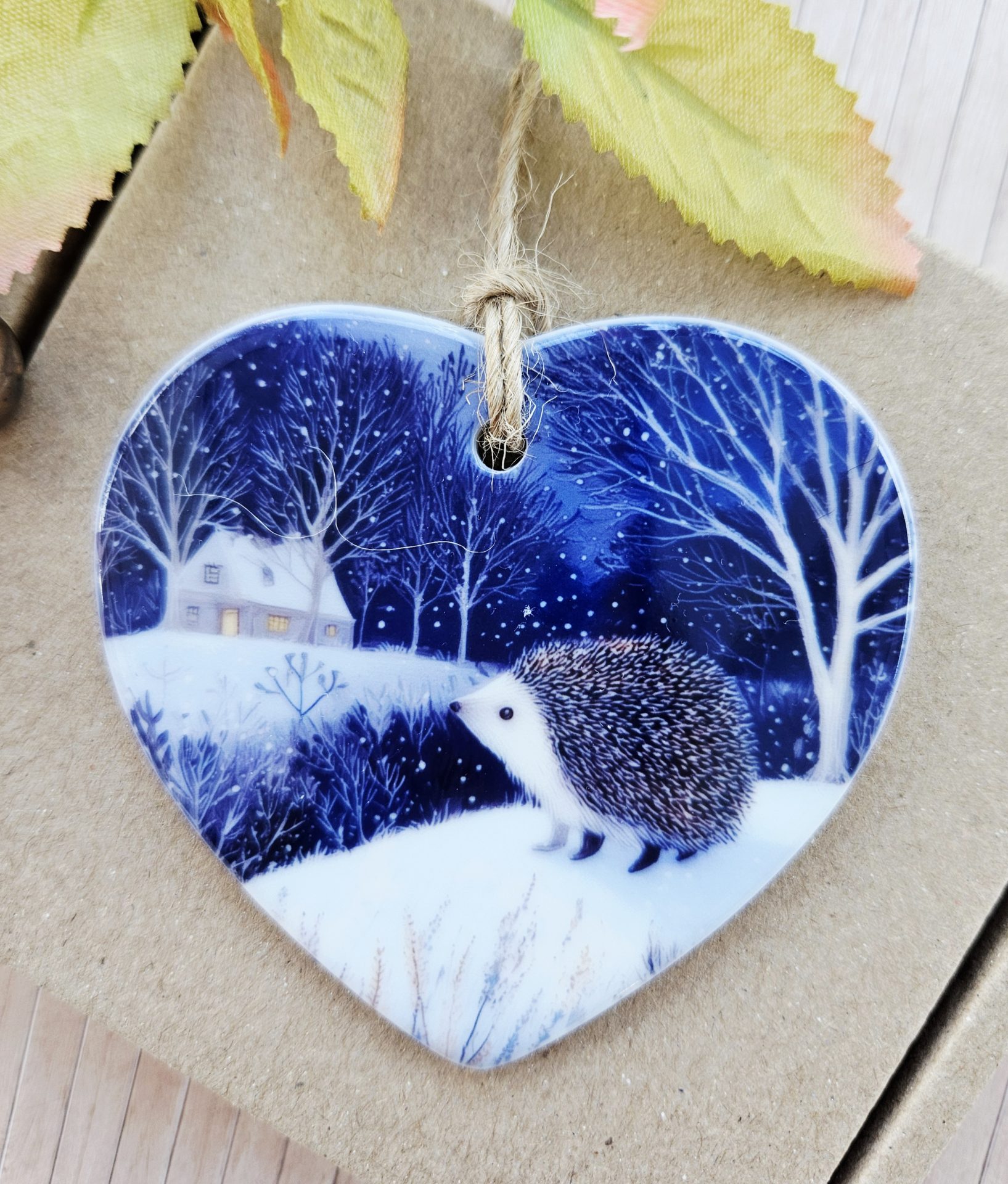 Hedgehog Ceramic Heart Ornament – Woodland Winter Decoration