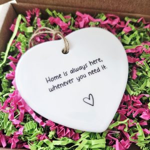 A heartfelt reminder that home is never far away. This ceramic heart keepsake is a thoughtful gift for a son or daughter starting university or embarking on a new adventure. Handcrafted with care, it features the comforting message: “Home is always here, whenever you need it.” Perfect for dorm rooms, desks, or tucked on a shelf, it’s a daily reminder that they’re loved and welcome home.