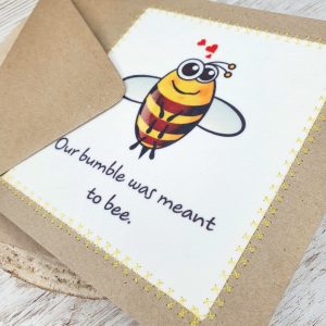 The design on the card is printed onto a lovely 100% polyester, white ‘suede feel’ fabric, giving it a lovely soft feel and is then machine stitched onto the card.