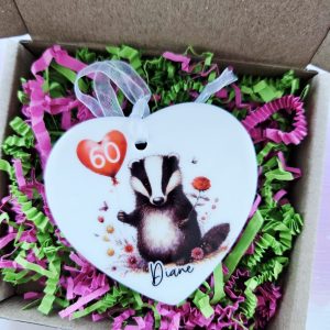This personalised badger birthday heart is a thoughtful keepsake for celebrating birthdays of all ages.