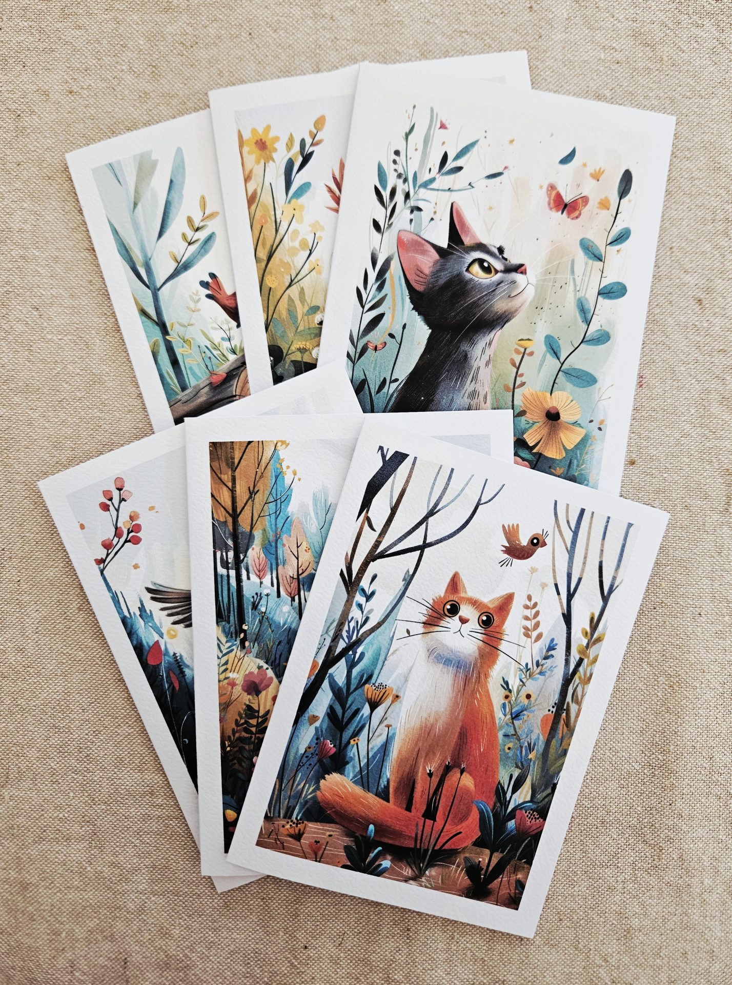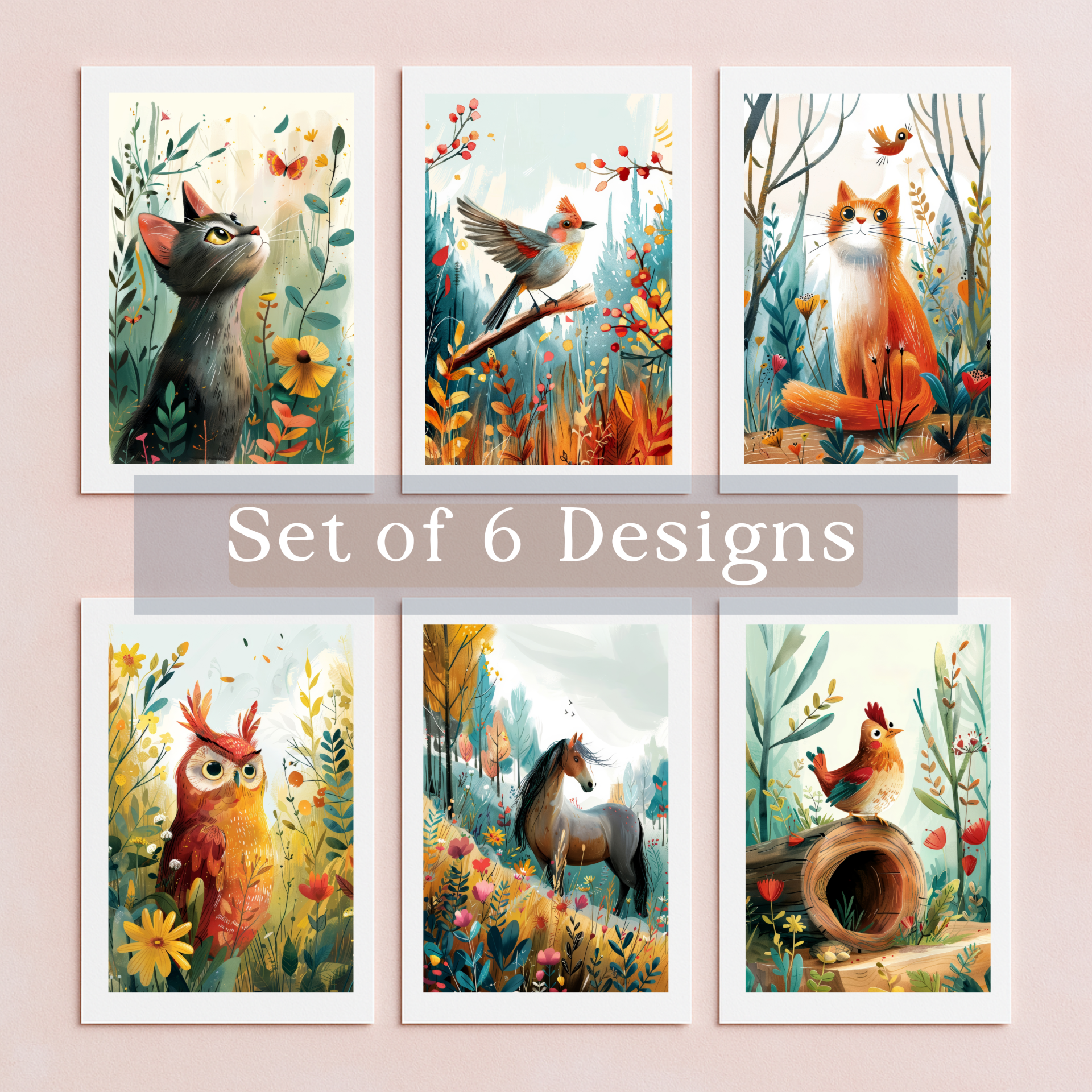 Set of 6 A6 Animal Greeting Cards – Whimsical Illustrated Card Set