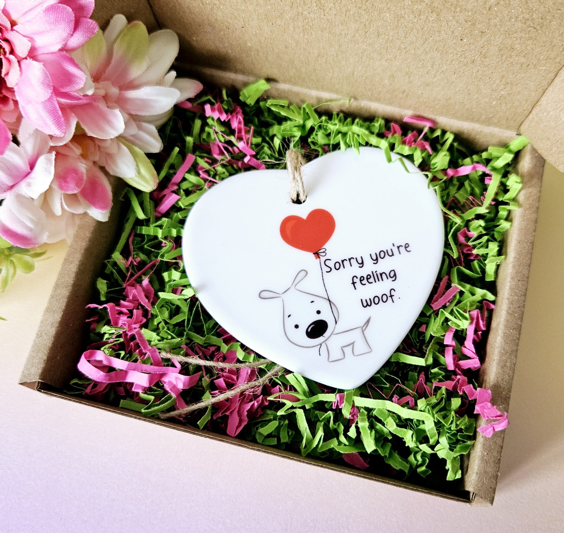 Brighten someone’s day with our “Sorry You’re Feeling Woof” get well soon gift.