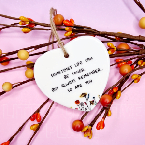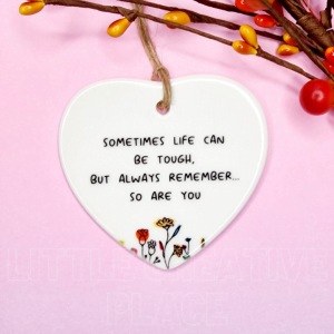 Sometimes life can be tough, but this beautiful ceramic heart ornament reminds your loved ones that they are stronger than they think. Perfect as a thoughtful encouragement gift, this keepsake lets someone know you’re thinking of them during challenging times.
