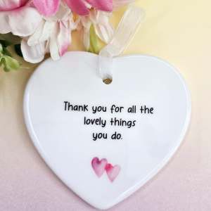 Show your appreciation with thi “Thank You for All the Lovely Things You Do” ceramic keepsake.