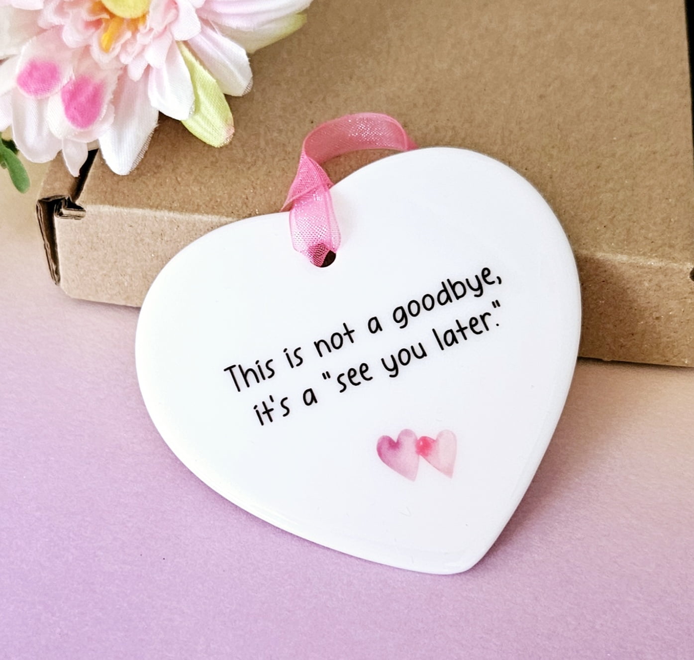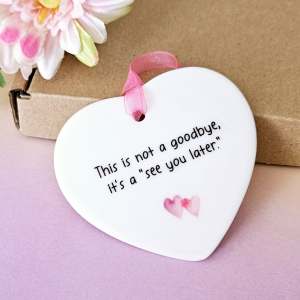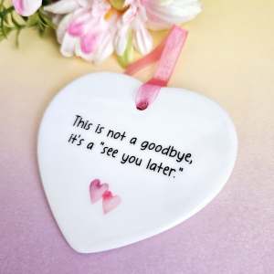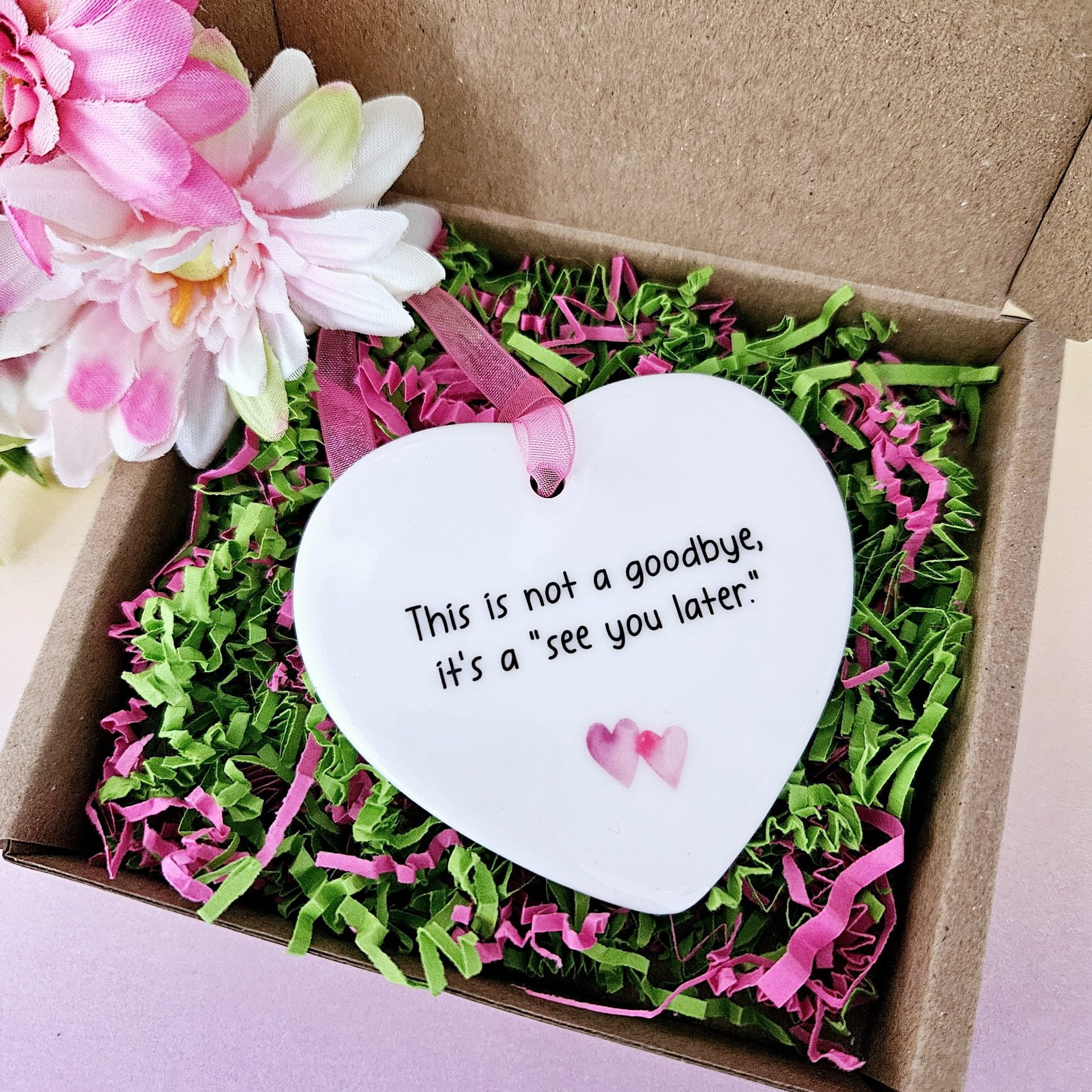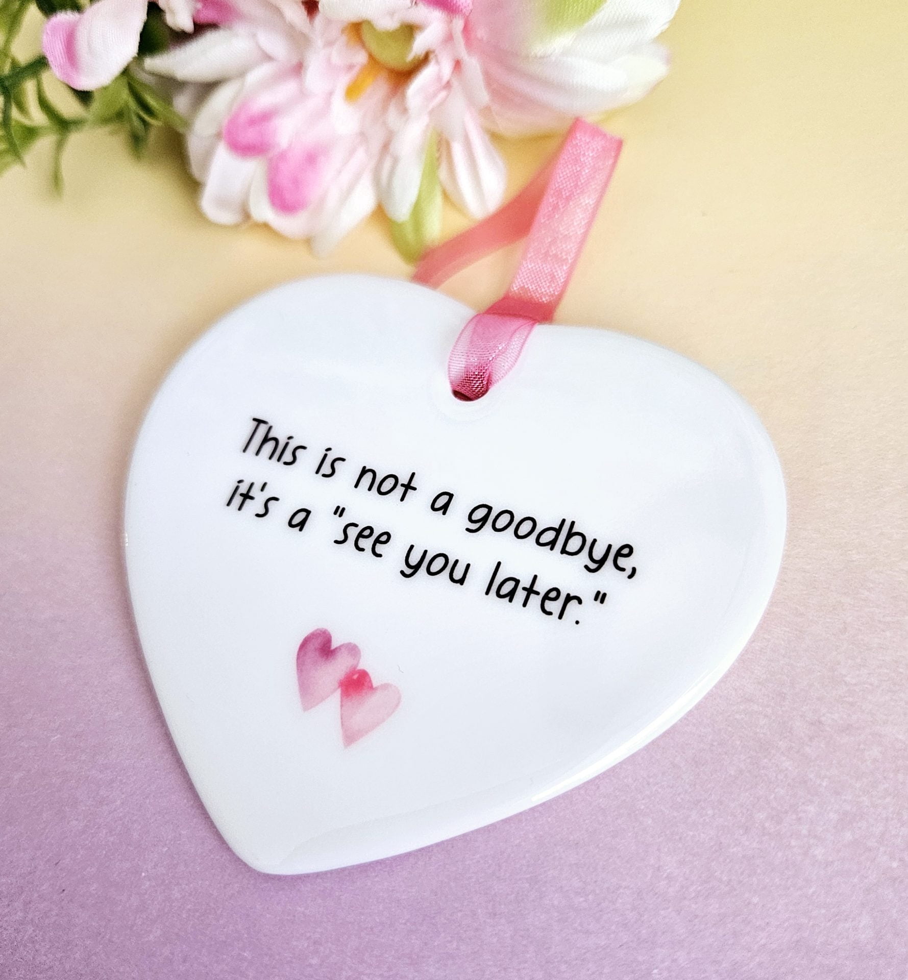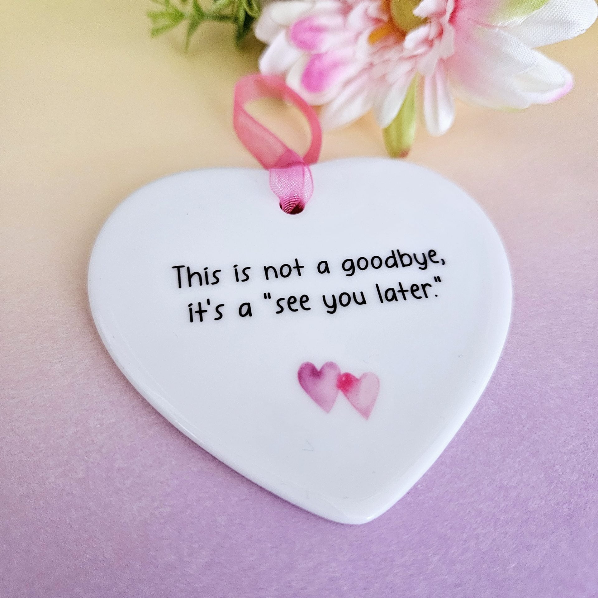 Capture heartfelt goodbyes with a personalized “This is not a goodbye, it’s a see you later” ceramic heart keepsake. Perfect farewell gift for retirement, moving away, new job, or bidding farewell to a friend.