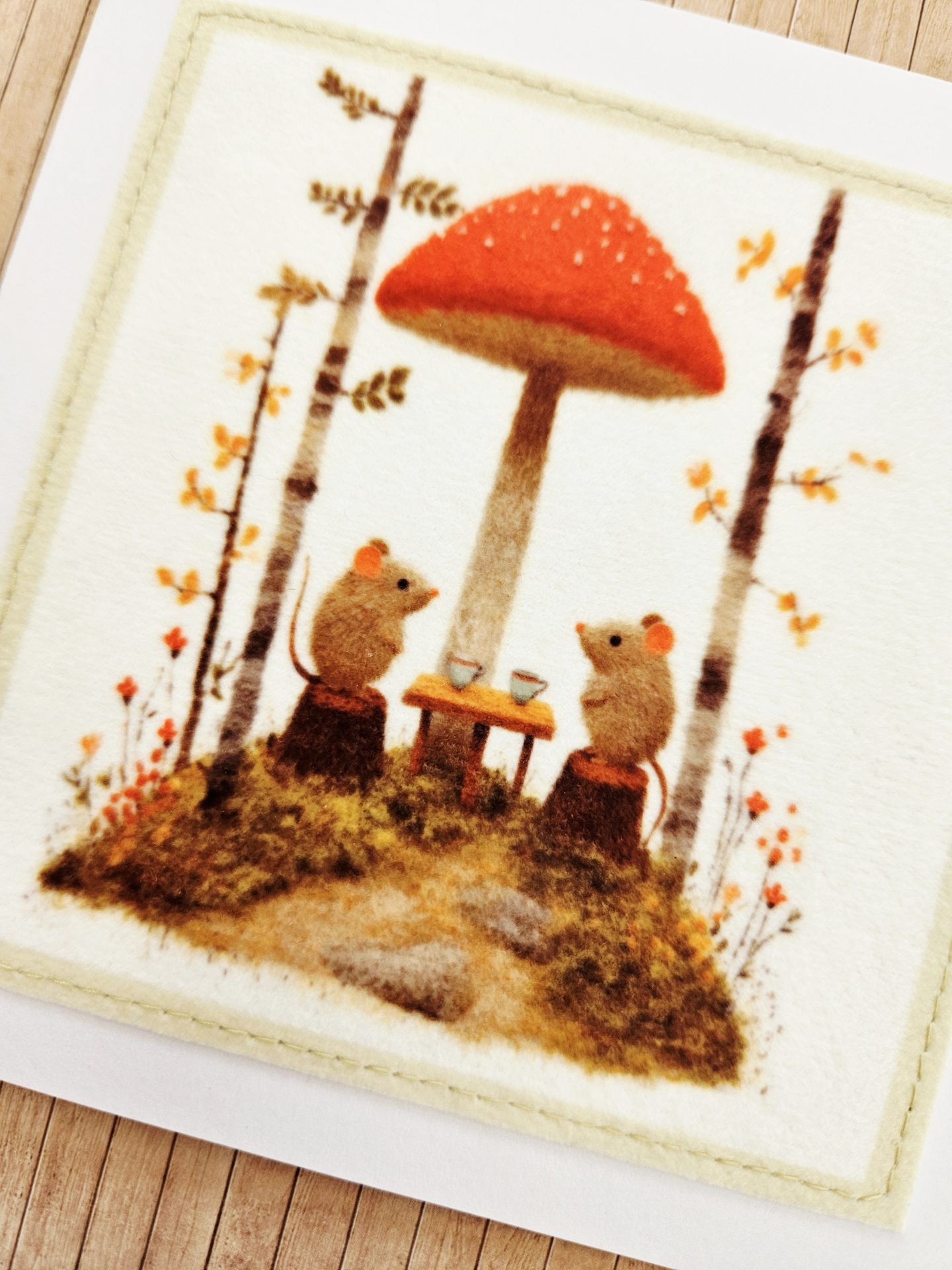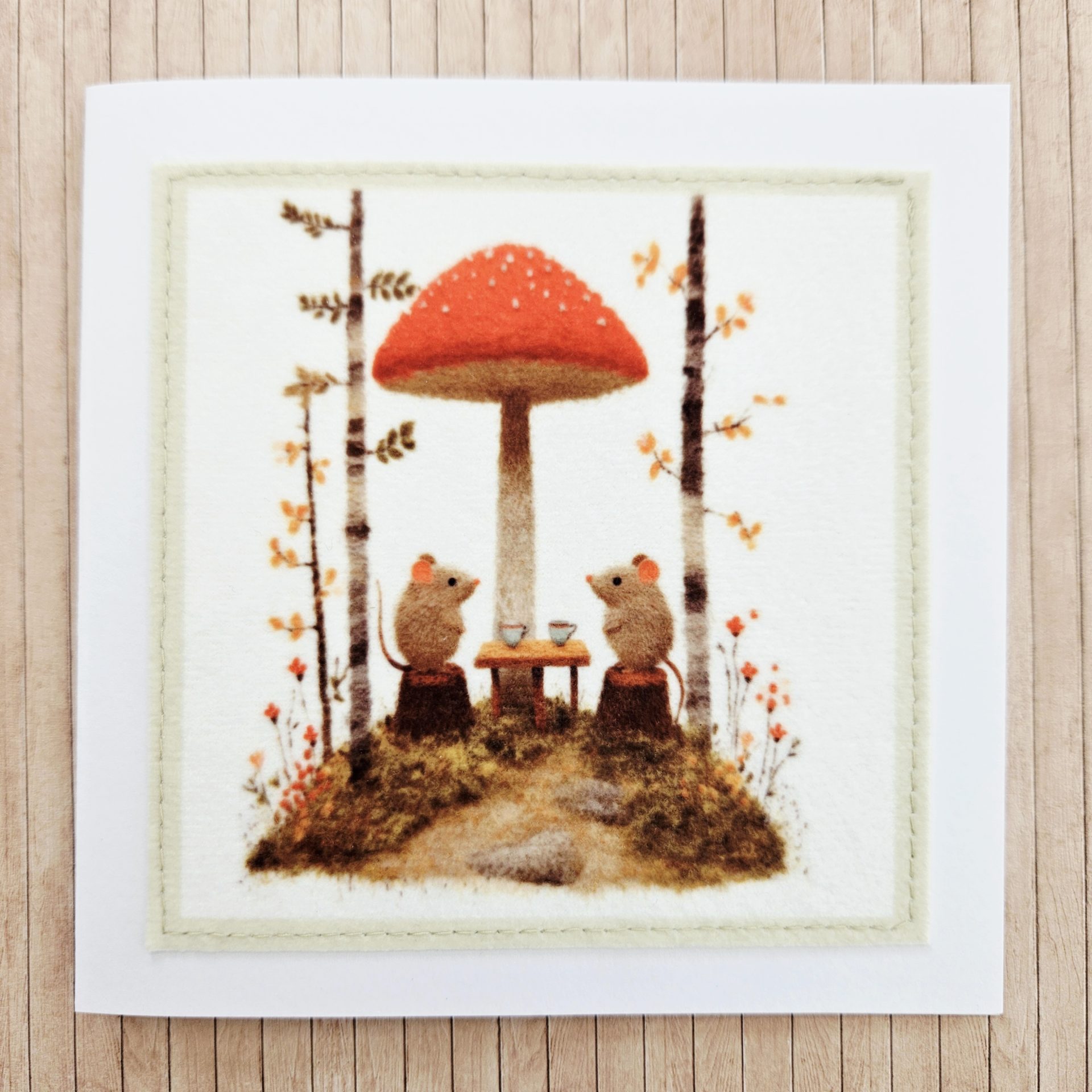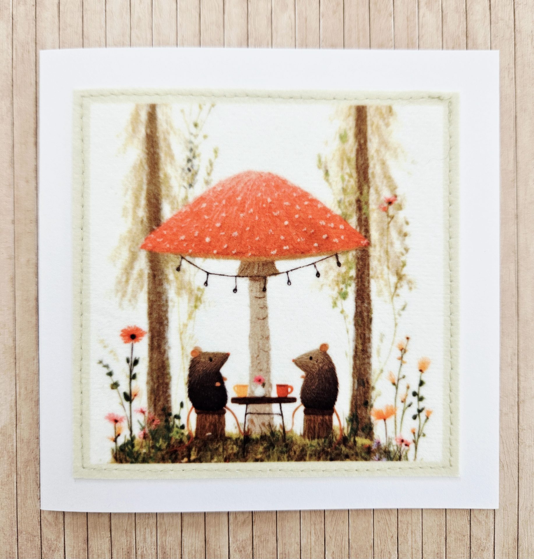 Bring a little woodland magic to someone’s day with this charming woodland mushroom greeting card set. It features sweet hedgehogs and mice enjoying a cosy tea party beneath bright red toadstools.