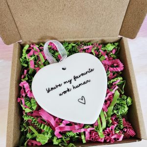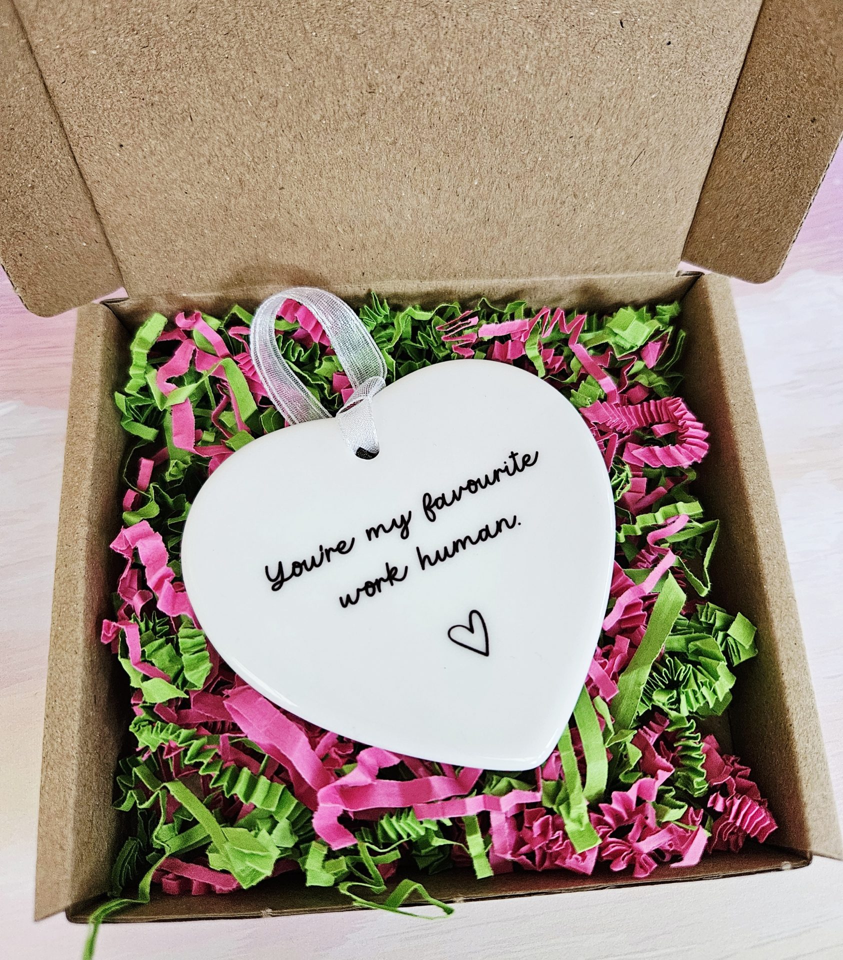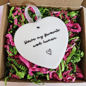 This “You’re My Favourite Work Human” ceramic ornament is a cheerful and meaningful way to show appreciation.